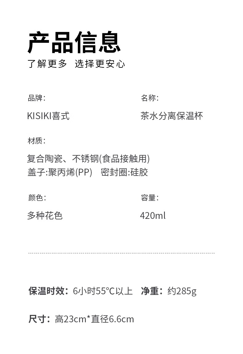 喜式KISIKI茶水分离保温杯420ml